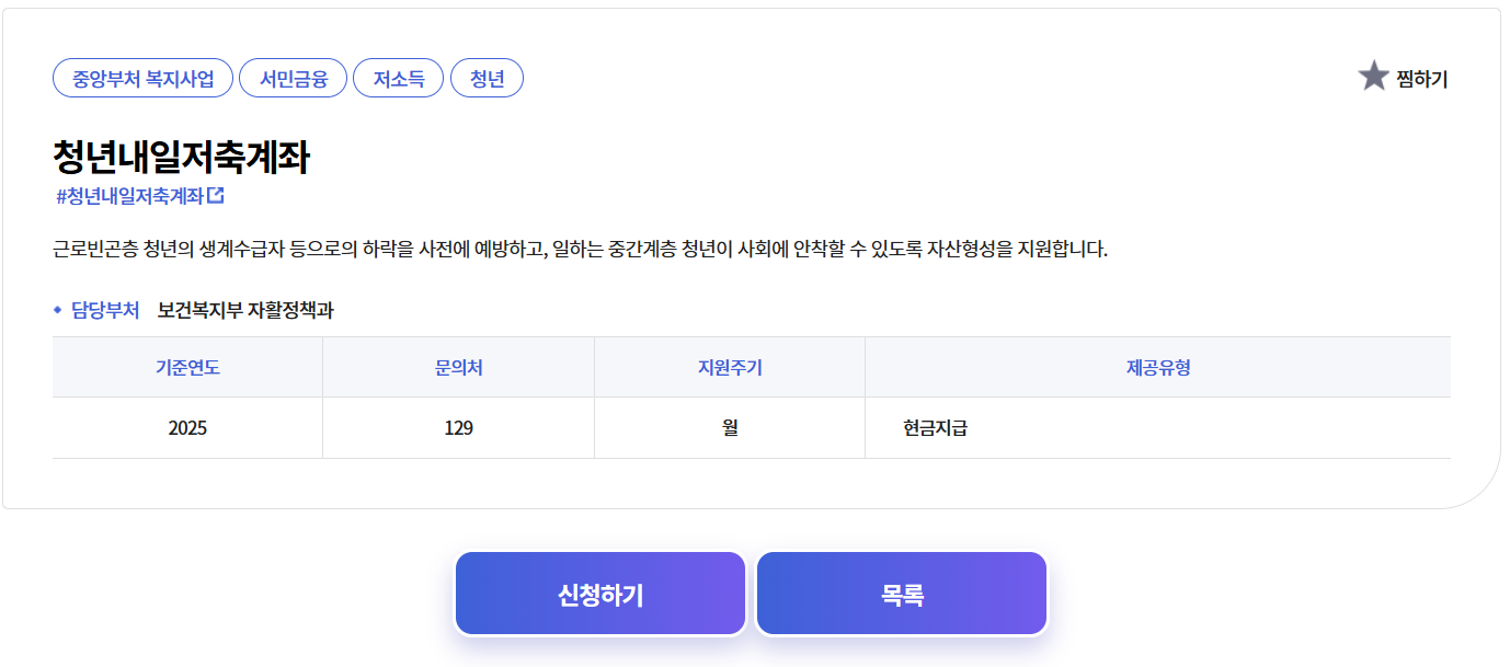 - 지원 방식: 본인 저축액에 정부가 추가 지원금을 지급