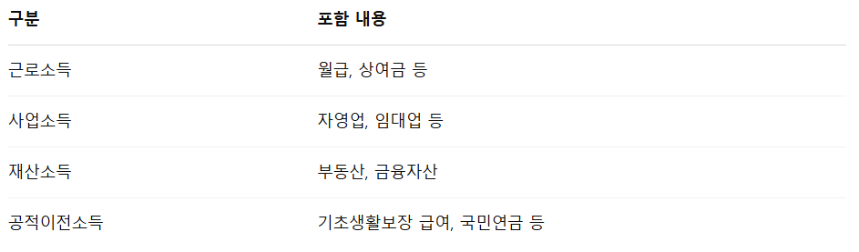 이를 판단하는 기준이 소득인정액인데, 다음 요소를 포함합니다.