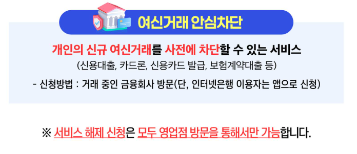 ※ 단, 기존에 사용 중인 금융상품은 영향을 받지 않으며, 차단 신청 이후부터의 신규 거래만 제한됩니다.